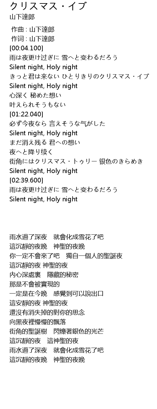 | [00:48.590] | きっと君は来ない ひとりきりのクリスマス・イブ |