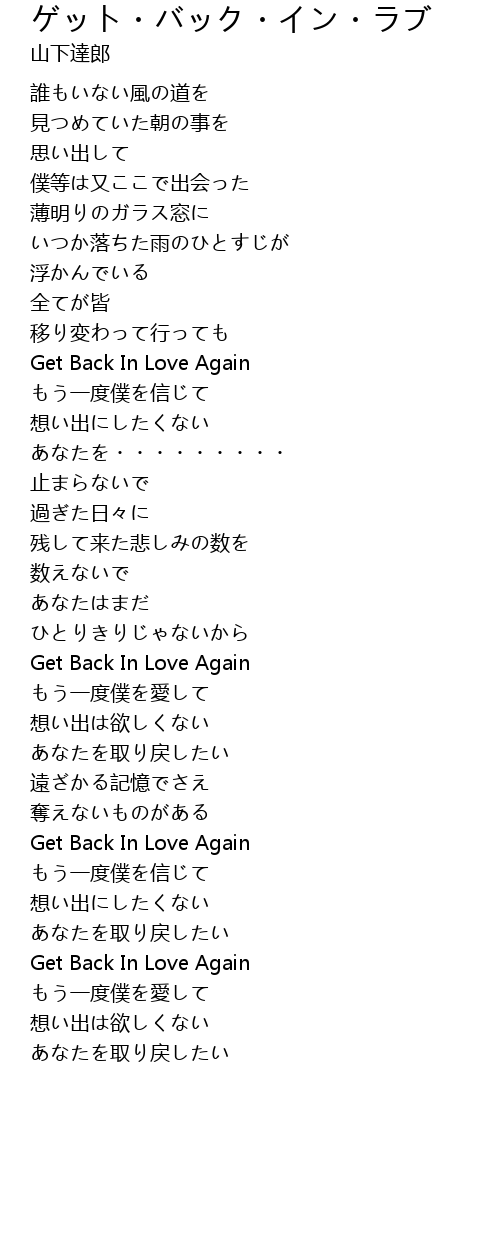 | 歌曲 | ゲット・バック・イン・ラブ |
