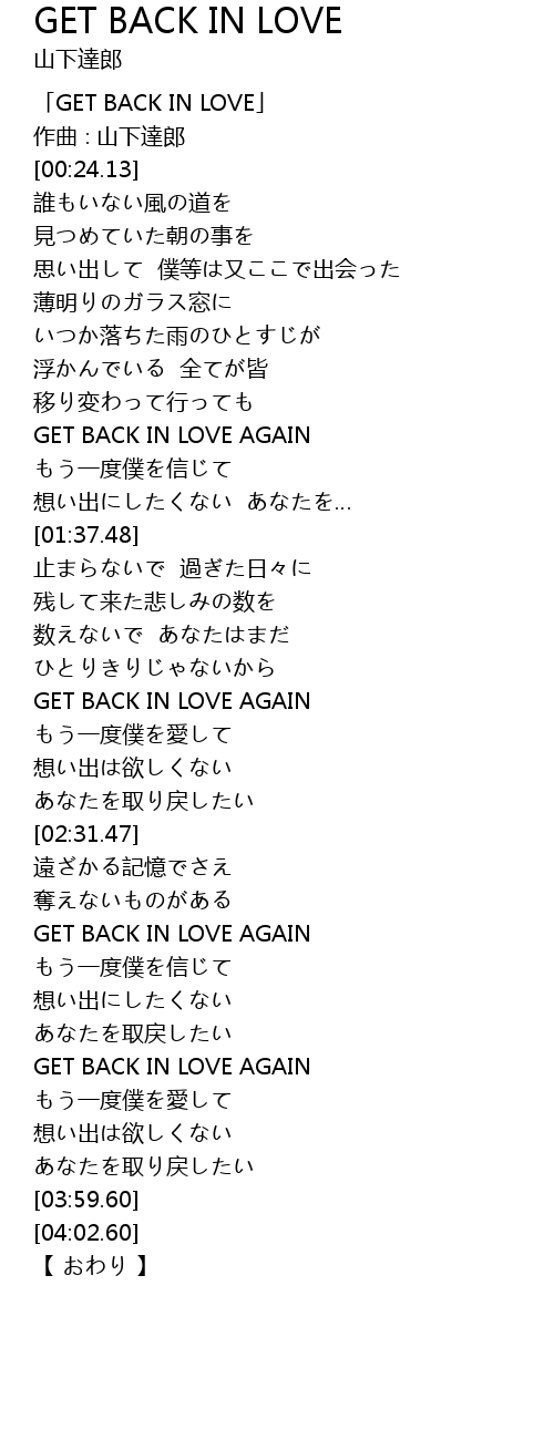 | [00:01.13] | 「GET BACK IN LOVE」 |