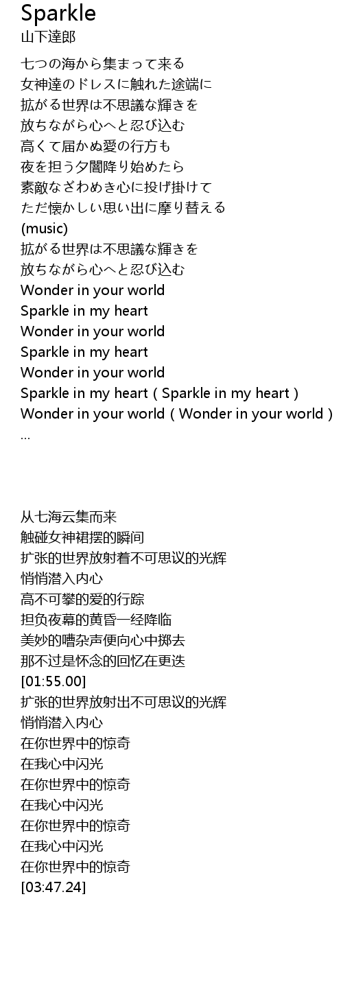 | [03:37.77] | Sparkle in my heart Sparkle in my heart |