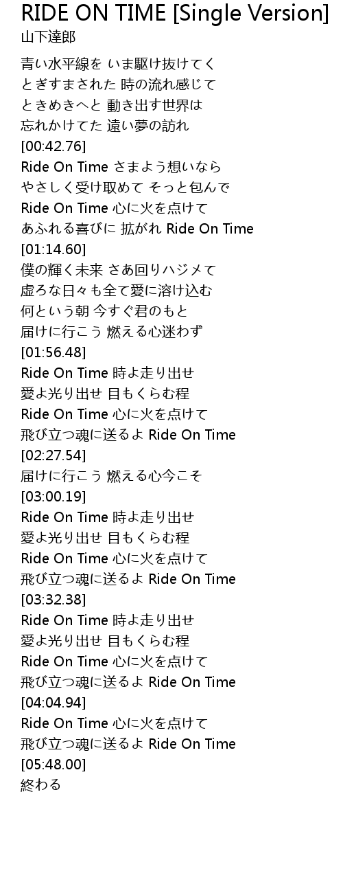 | [05:32.50] | Ride On Time 心に火を点けて |