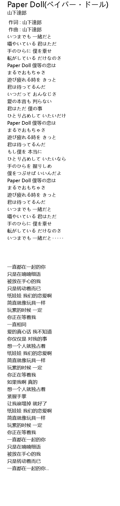 | [00:33.344] | Paper Doll 僕等の恋は |