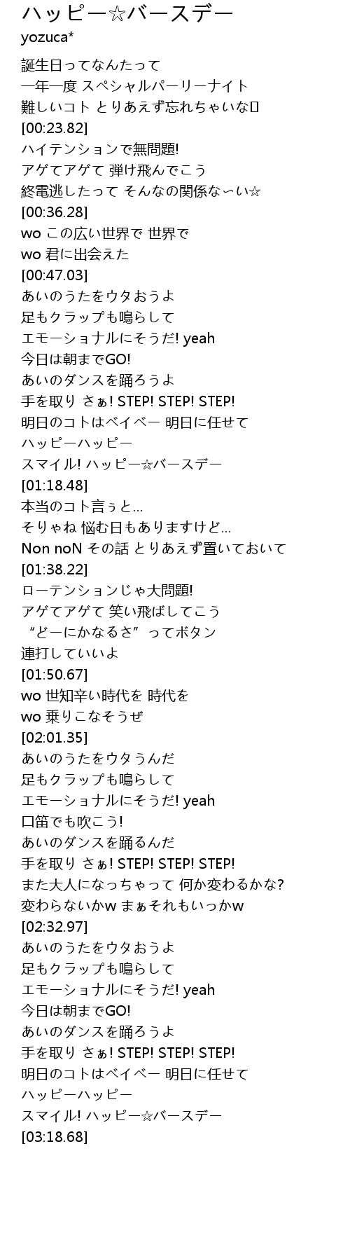 | [03:16.55] | スマイル! ハッピー☆バースデー |