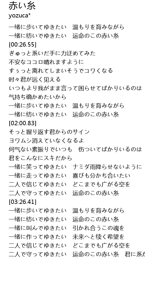 | [03:56.97] | 一绪に纺いでゆきたい 运命のこの赤い糸 |