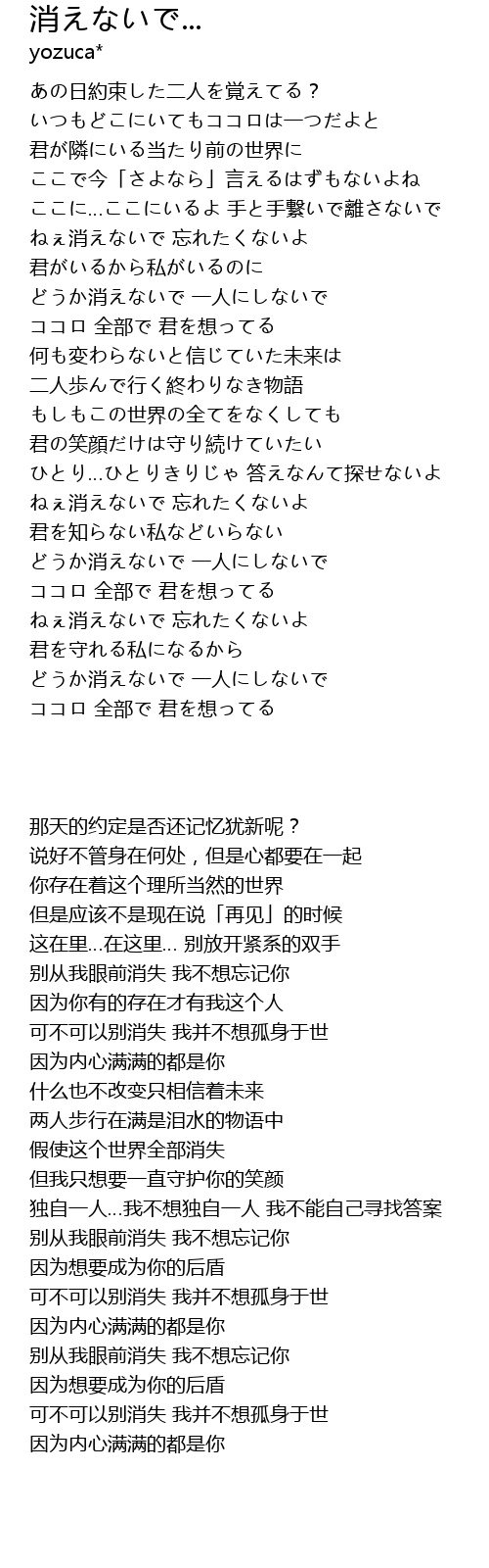 | [04:15.000] | ねぇ消えないで 忘れたくないよ |