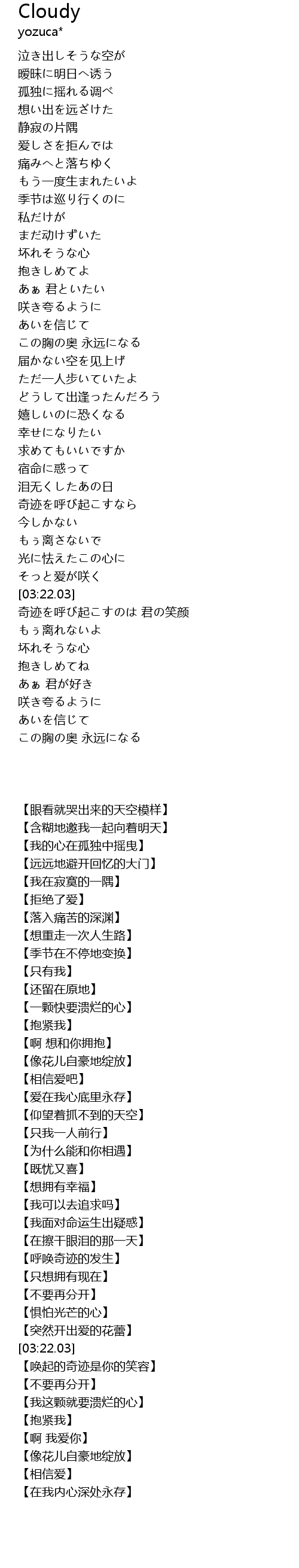 | 歌曲 | Cloudy |