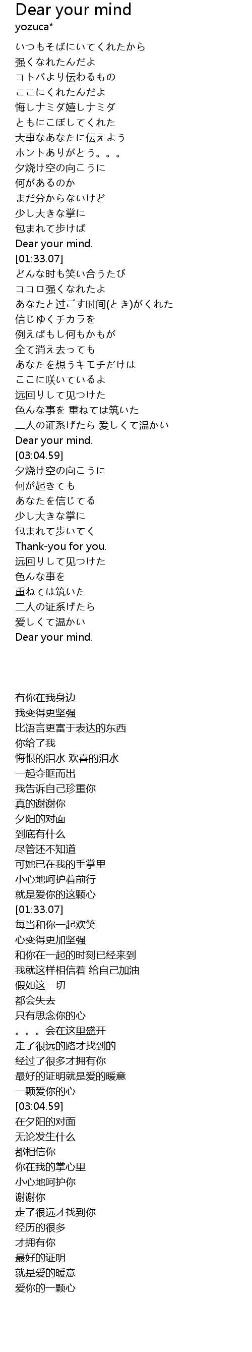 | [04:20.07] | Dear your mind. |