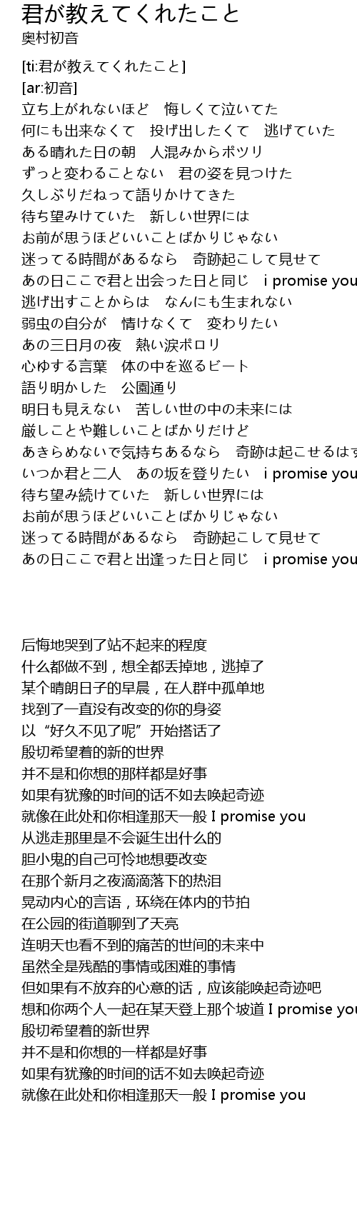 | [01:11.80] | あの日ここで君と出会った日と同じ i promise you |