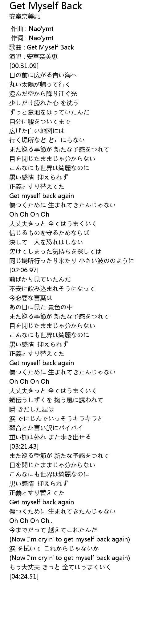 | [00:02.04] | 歌曲∶Get Myself Back |