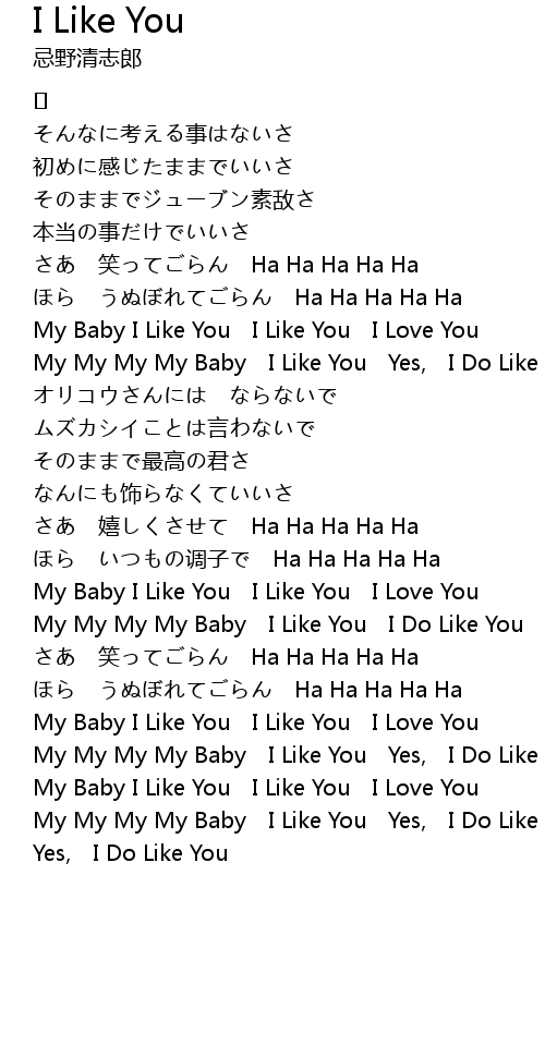 | My My My My Baby I Like You Yes, I Do Like You | |