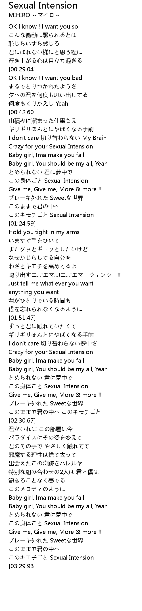 | [00:52.93] | Crazy for your Sexual Intension |