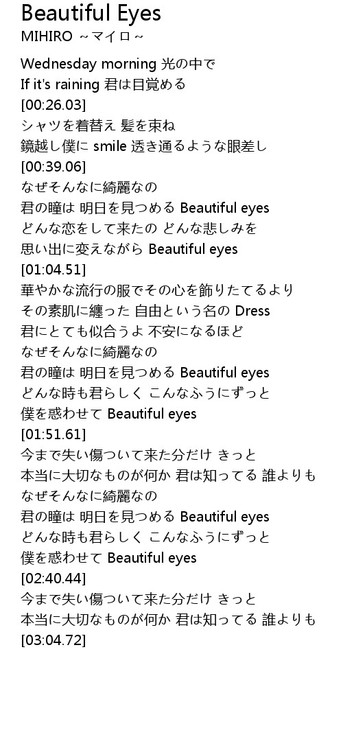 | [00:57.89] | 思い出に変えながら Beautiful eyes |