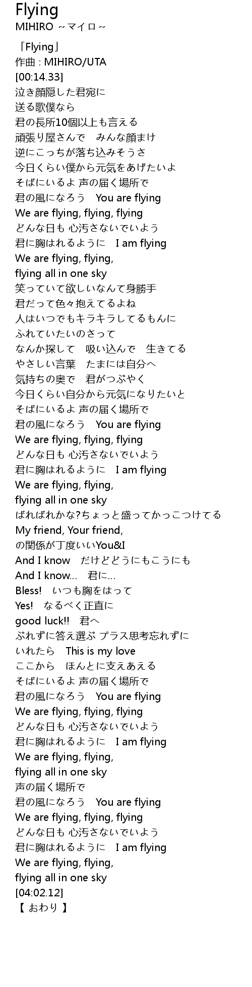 | [00:07.33] | zuo qu MIHIRO UTA |