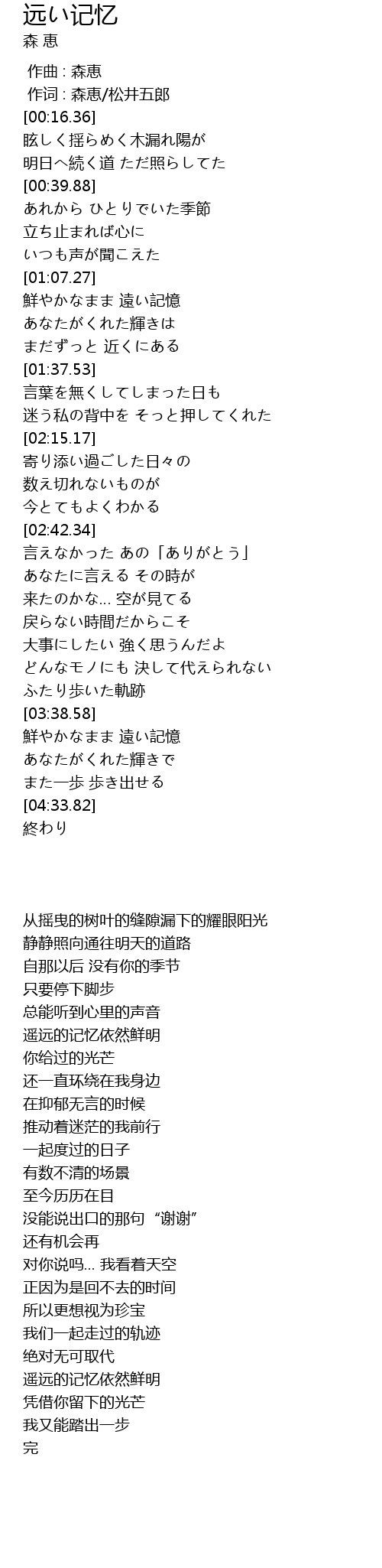 | [04:01.14] | 鮮やかなまま 遠い記憶 |