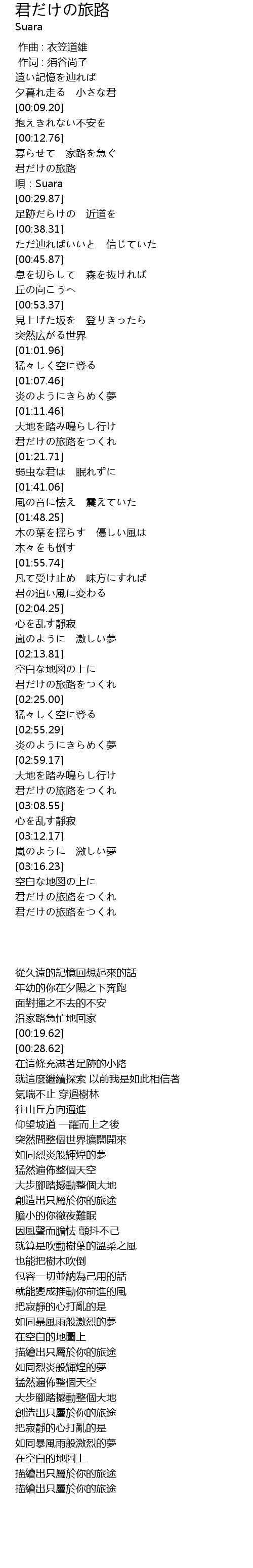 | [03:20.23] | 描繪出只屬於你的旅途 |