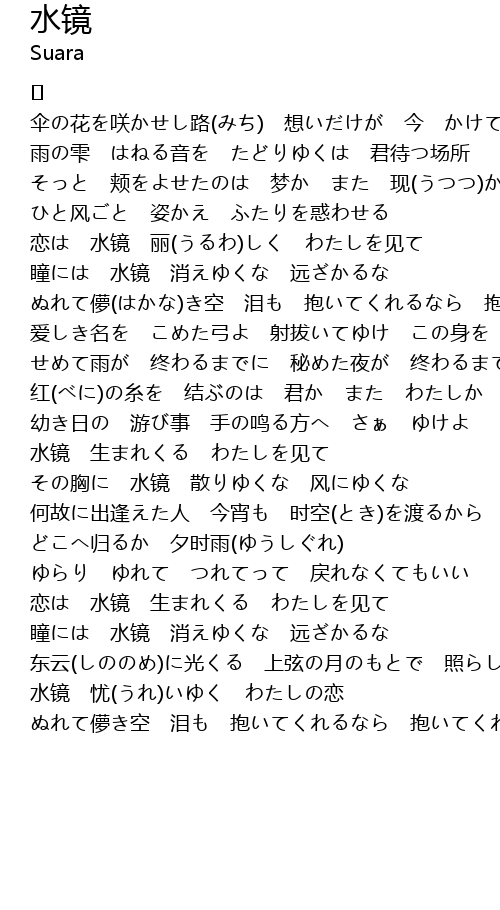 | 瞳には 水镜 消えゆくな 远ざかるな | |