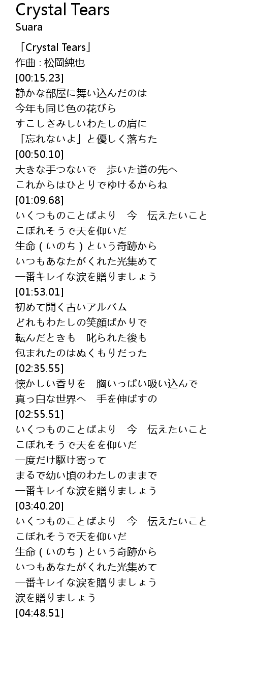 | [00:01.23] | 「Crystal Tears」 |