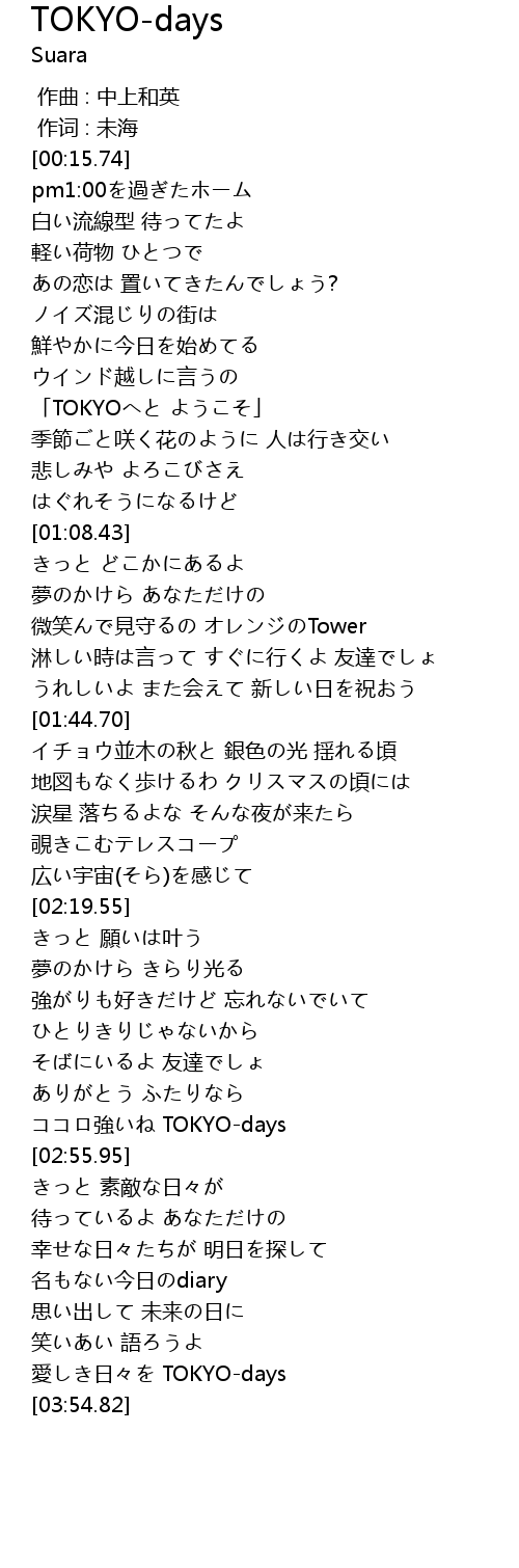| [03:50.21] | 愛しき日々を TOKYO-days |