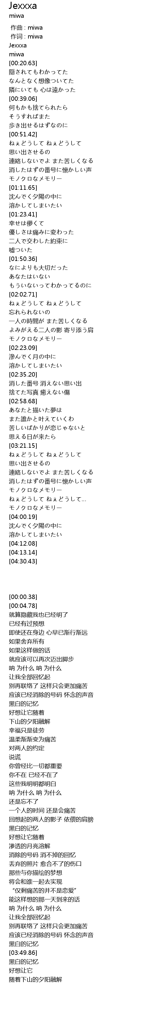 作词 : miwa |