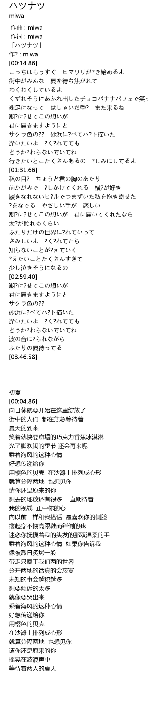 | [00:01.86] | 「ハツナツ」 |
