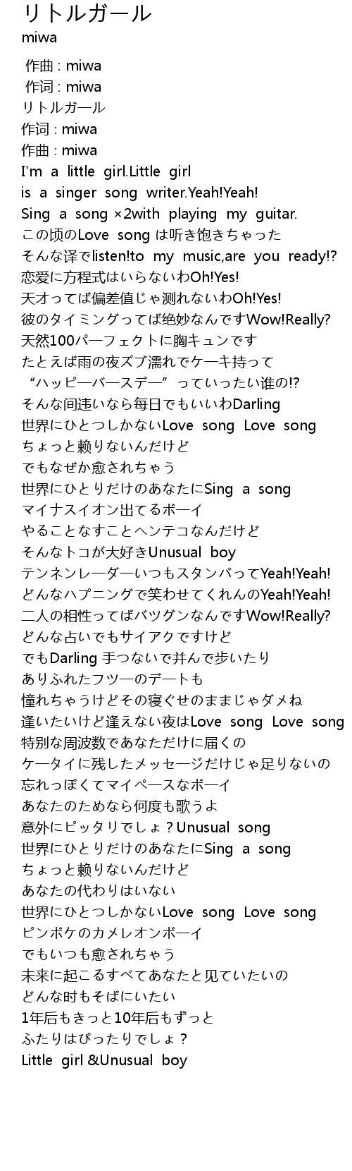 | [00:01.210] | 作词∶miwa |