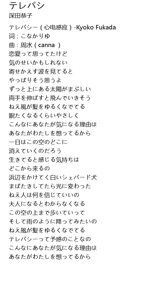 | [00:00.00] | テレパシー(心电感应)-Kyoko Fukada |