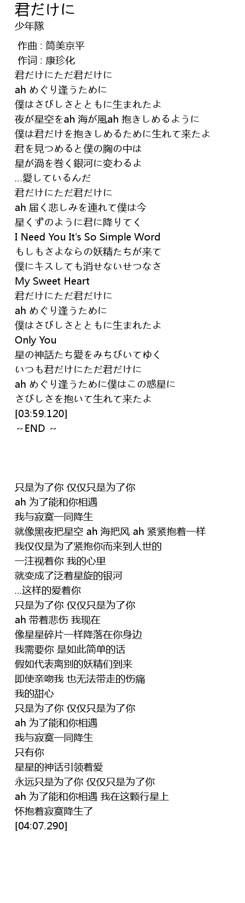 | [00:17.370] | 只是为了你 仅仅只是为了你 |