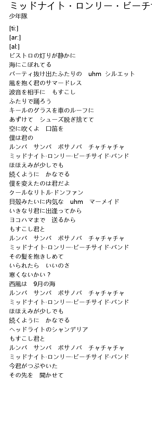 ミッドナイト・ロンリー・ビーチサイド・バンド 歌词