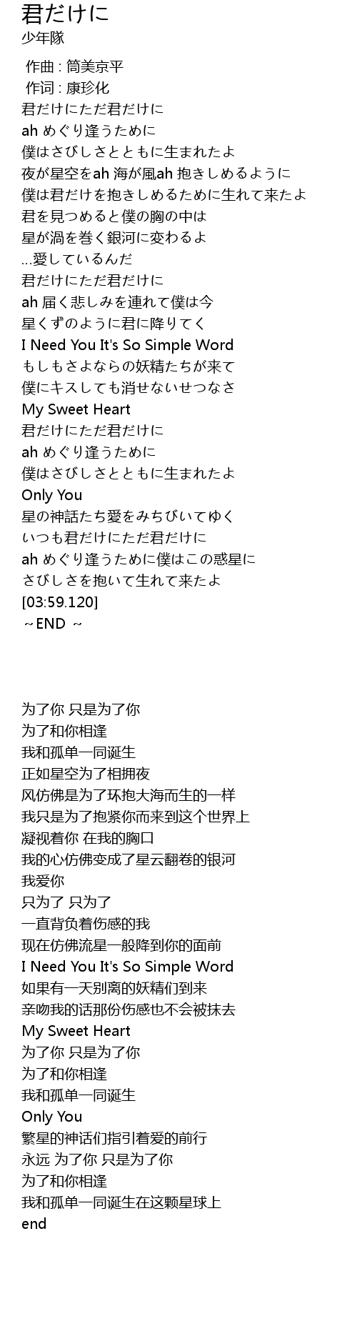 | [02:08.820] | I Need You It' s So Simple Word |