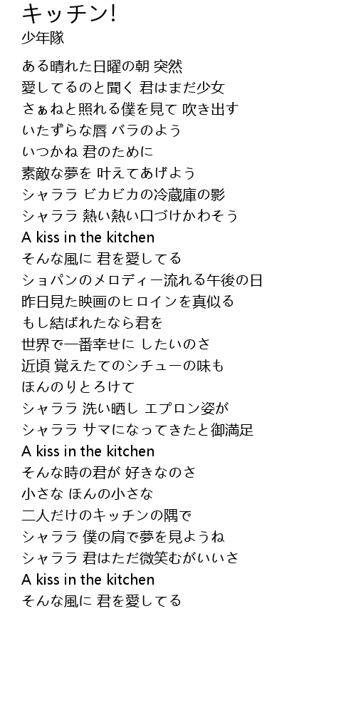 | [03:34.28] | 二人だけのキッチンの隅で |