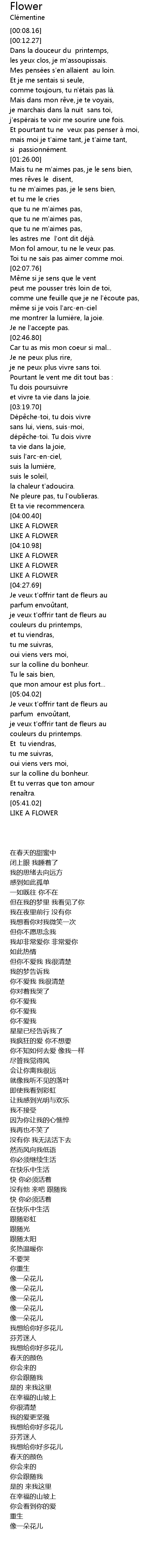 | [05:05.95] | Je veux t'offrir tant de fleurs au |