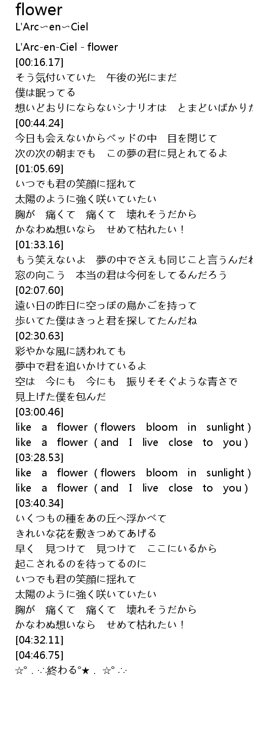 | [00:01.26] | L'Arc-en-Ciel - flower |
