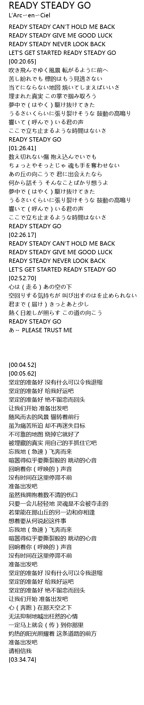 | [03:30.09] | READY STEADY GO |