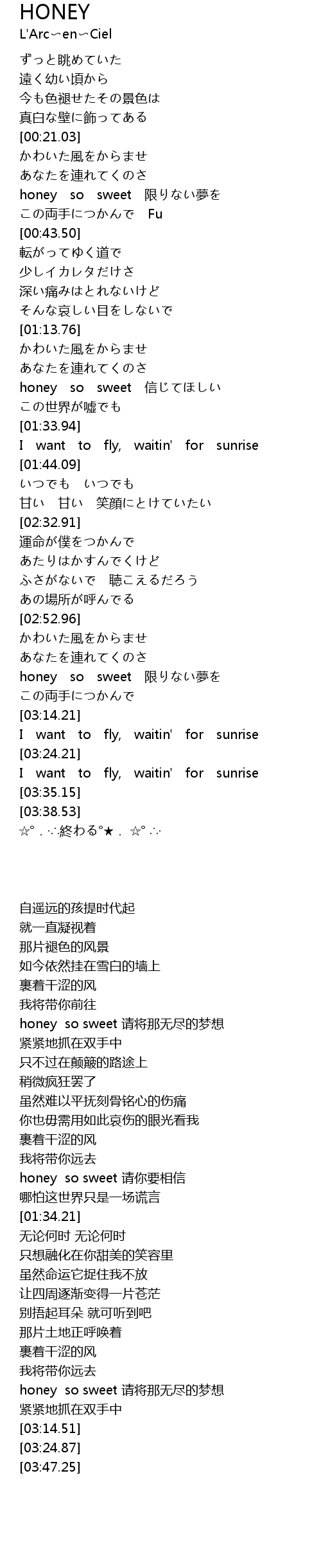 | [00:31.72] | honey so sweet 请将那无尽的梦想 |