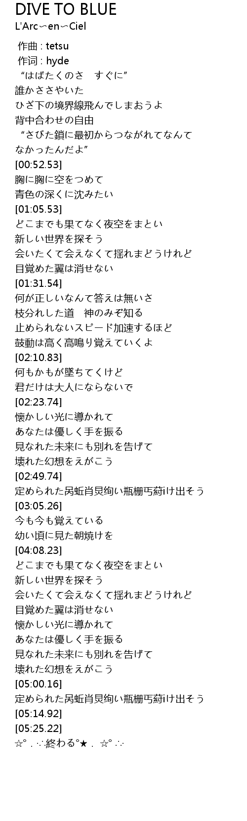 | [05:30.34] | ☆°.·∴終わる°★. ☆° ∴· |