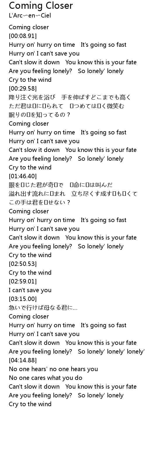 | [04:10.06] | Are you feeling lonely? So lonely' lonely' lonely' |