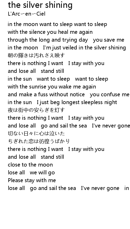 | [00:54.00] | in the moon I' m just veiled in the silver shining |