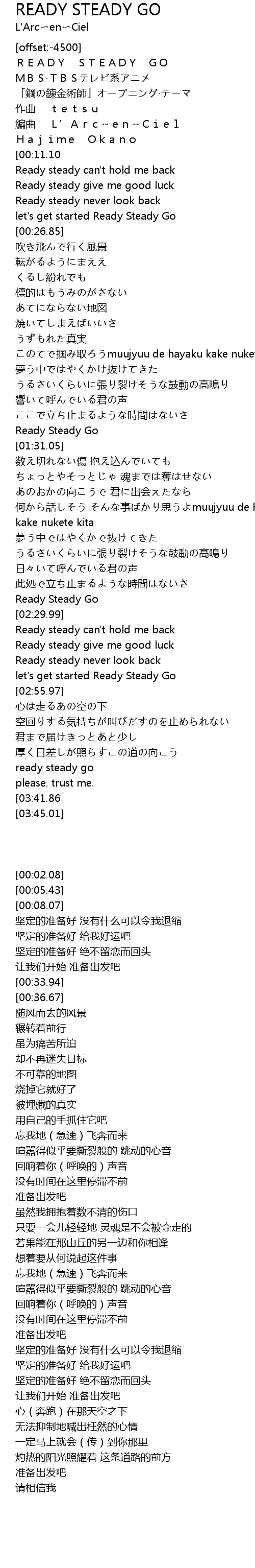 | [00:02.08] | READY STEADY GO |