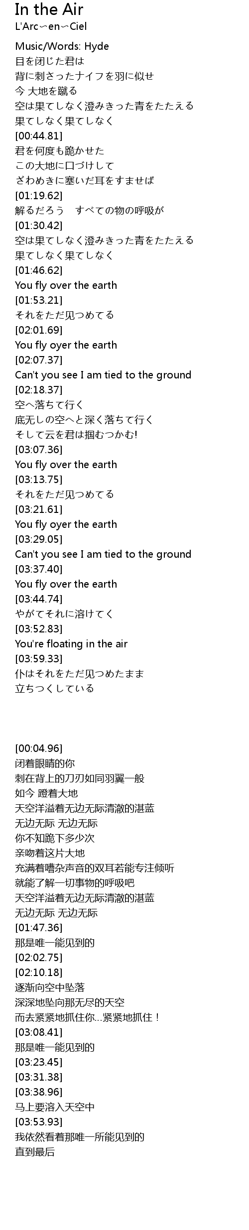 | [02:02.75] | You fly oyer the earth |