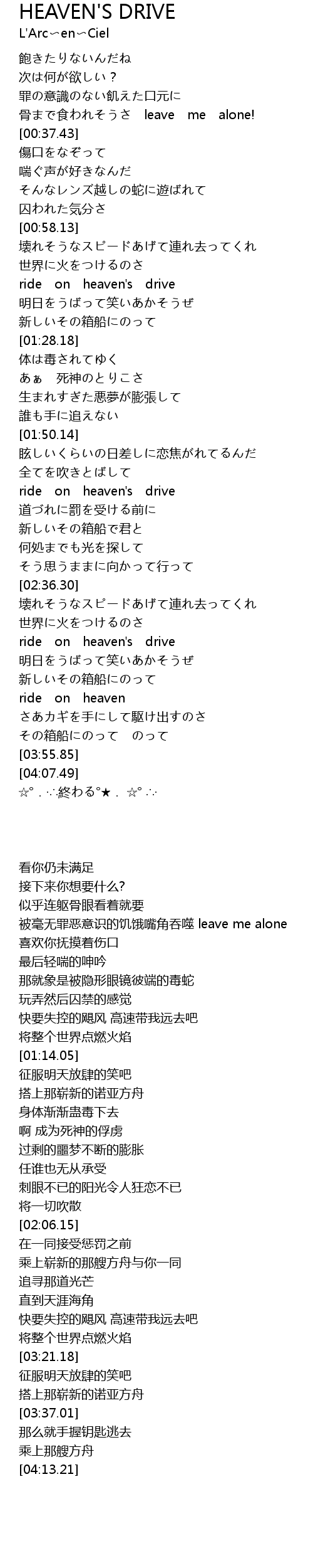 | [00:30.13] | 骨まで食われそうさ leave me alone! |