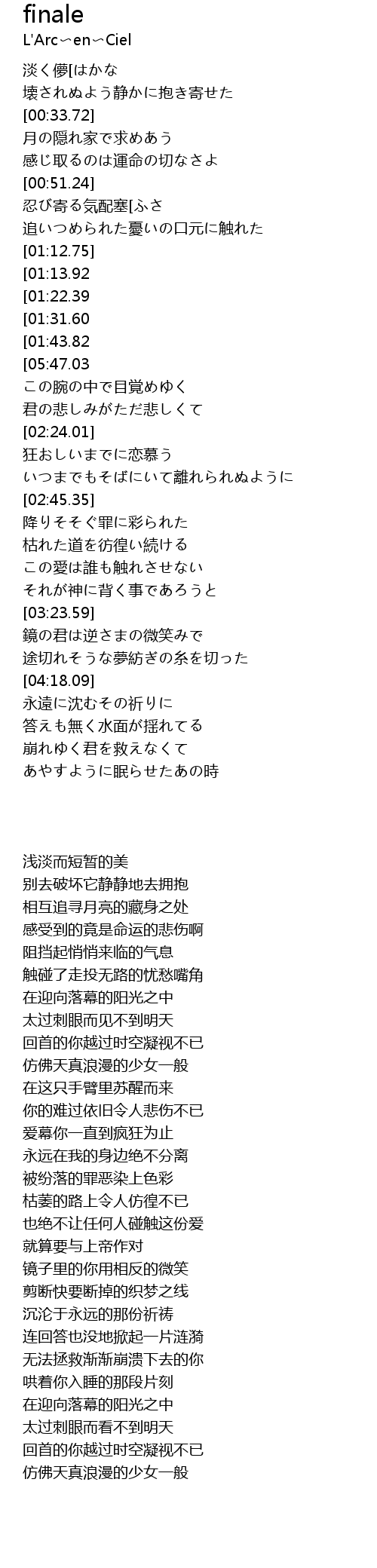 | [05:02.70][01:13.92] | 終幕へ向かう日差しの中 |