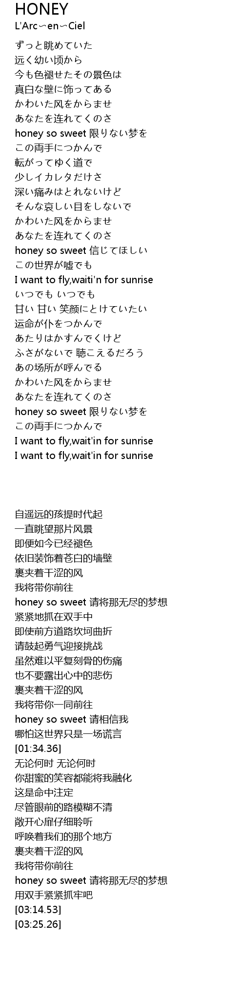 | [03:04.06] | honey so sweet 限りない梦を |