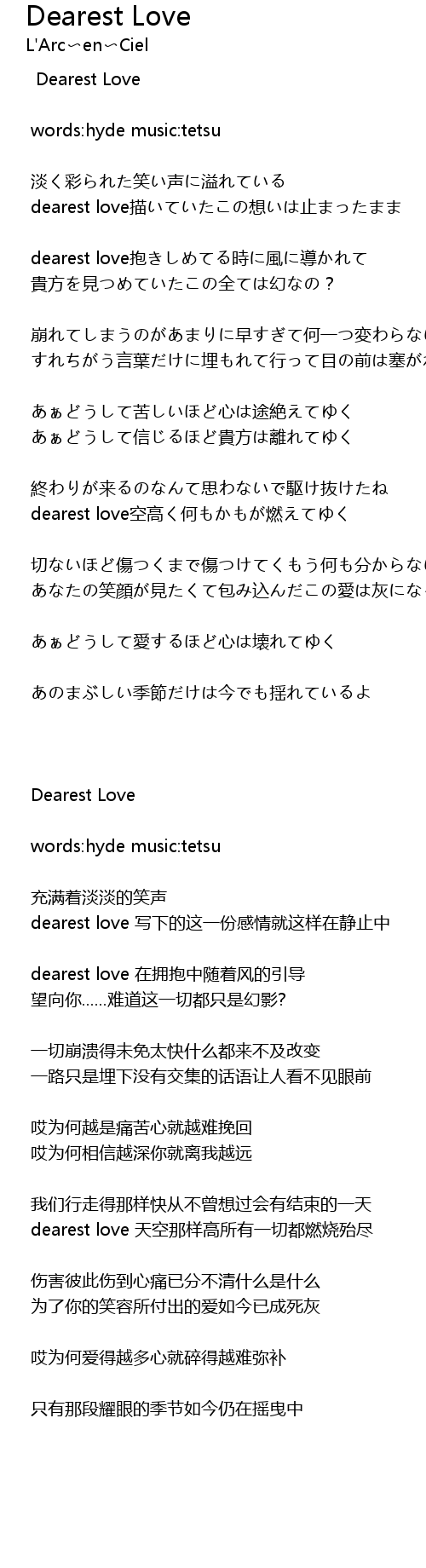 | dearest love描いていたこの想いは止まったまま | |