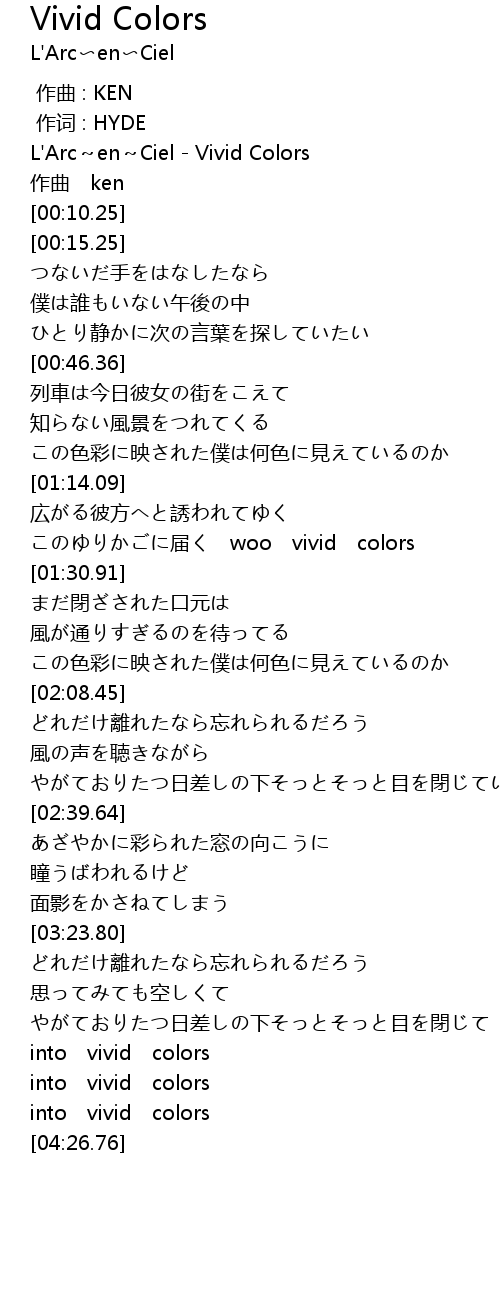 | [00:00.00] | L' Arc en Ciel Vivid Colors |