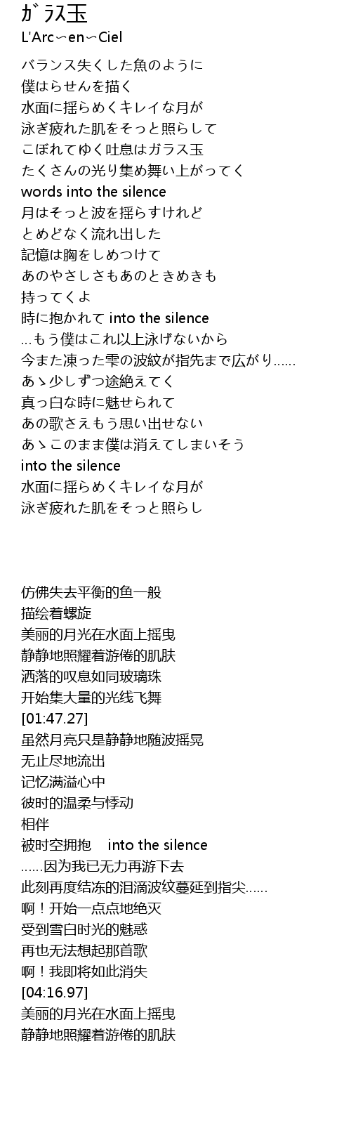 | [01:26.25] | 洒落的叹息如同玻璃珠 |