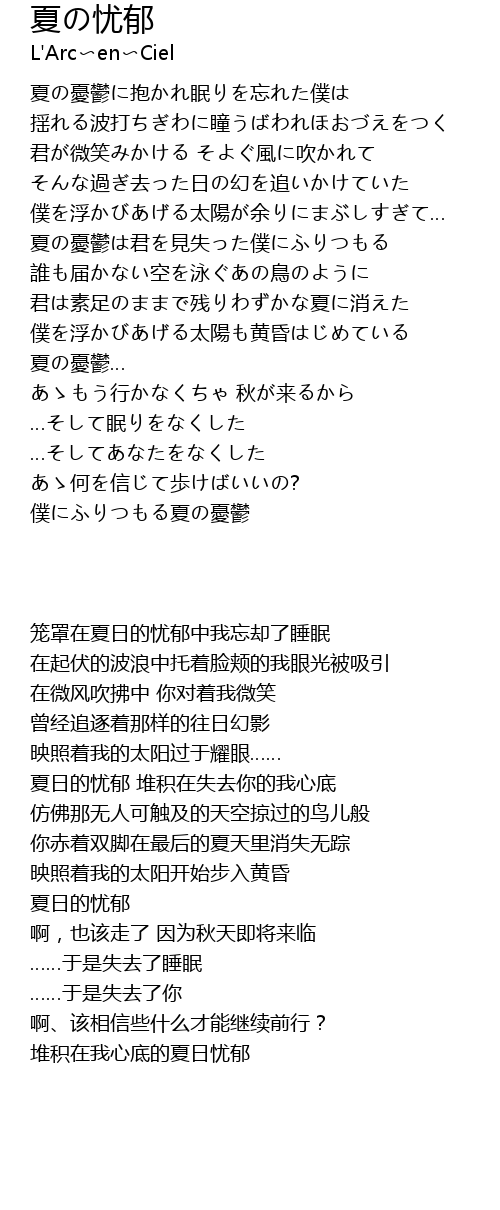 | [01:30.20] | 夏日的忧郁 堆积在失去你的我心底 |