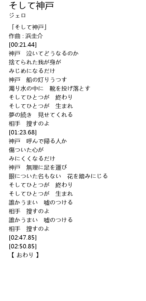 | [00:01.44] | 「そして神戸」 |
