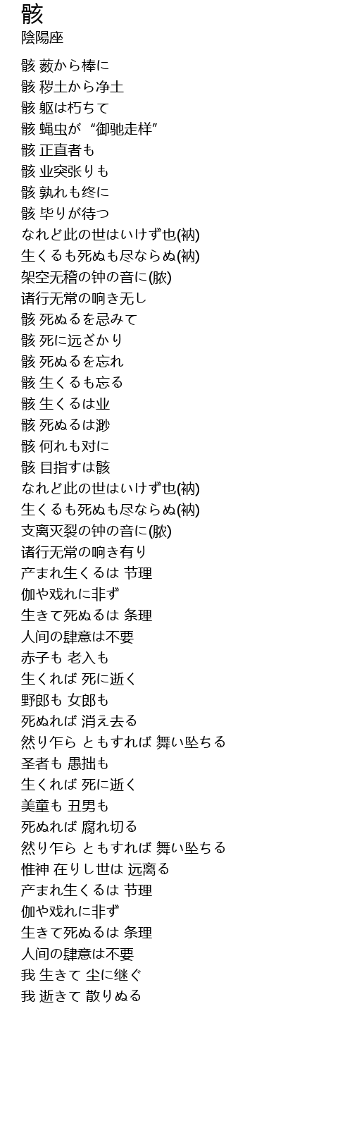 | 骸 孰れも终に | |