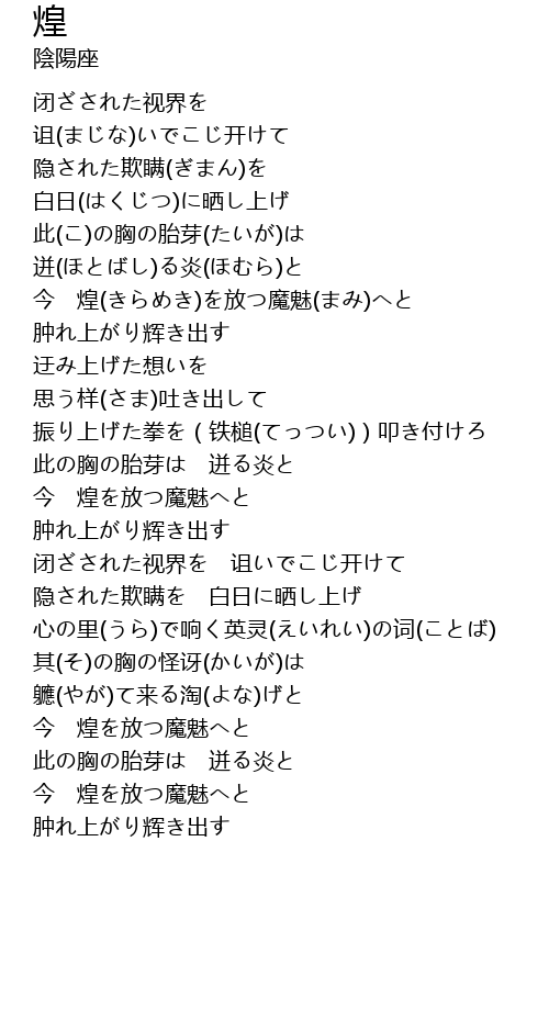 | 此の胸の胎芽は 迸る炎と | |