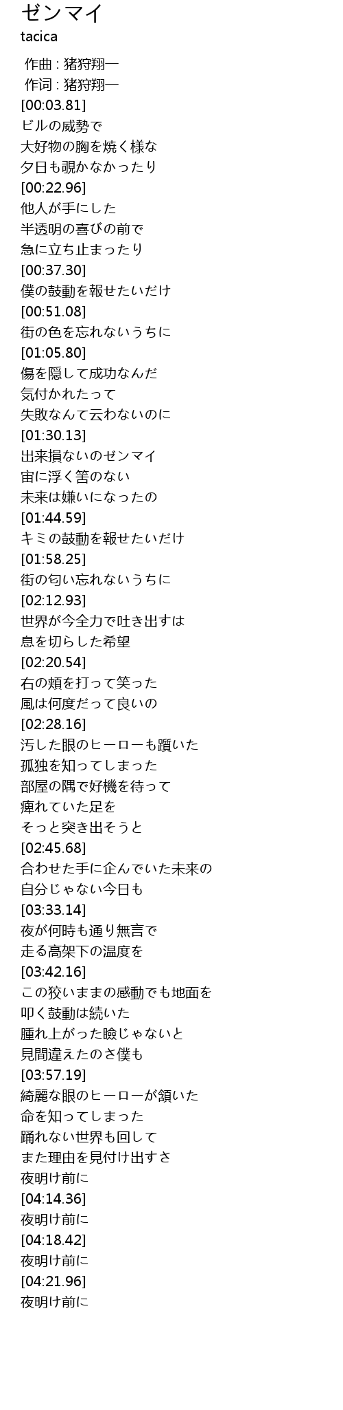 | [00:43.03] | 僕の鼓動を報せたいだけ |